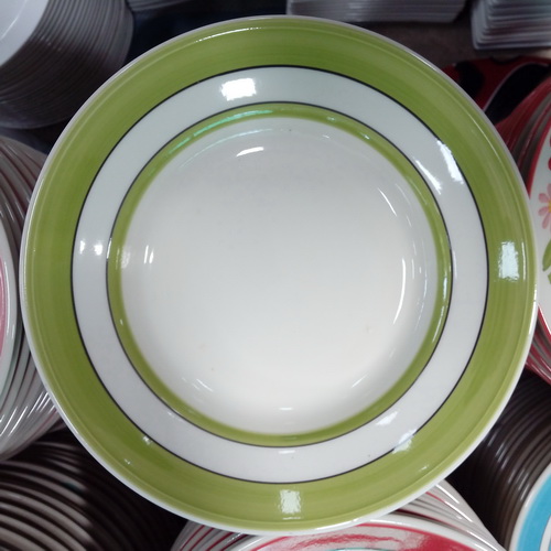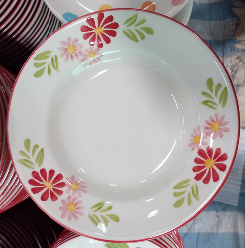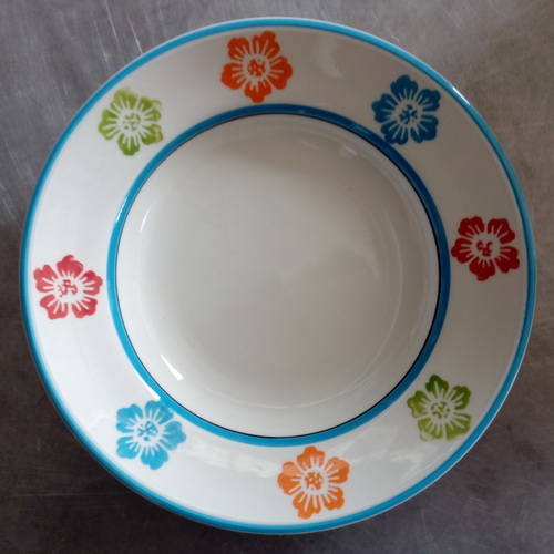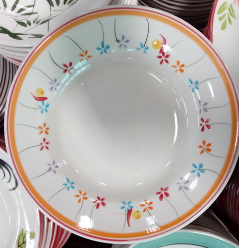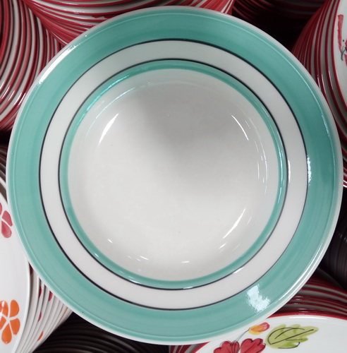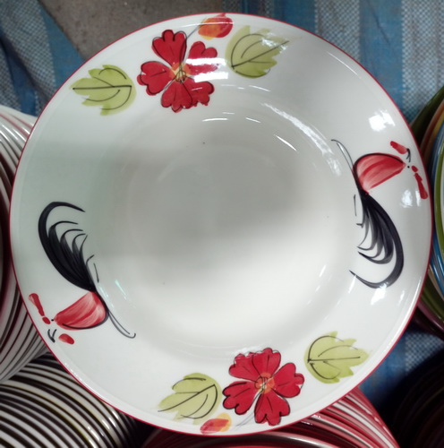 จานกระเบื้องเคลือบเซรามิคจากลำปางสินค้าขายส่ง เกรดเอ-คุณภาพ เซรามิคจากโรงงานราคาต้นทุนต่ำมีหลายแบบให้เลือก จานเซามิคสีสันสวยๆมีทั้งแบบงานวนสี และ งานวาดลวดลายต่างๆ เช่น จานเซรามิคทรงลึกวาดลายไก่ดอกชบา จานทรงลึกขนาด 8 นิ้ว วาดลายลูกองุ่น หรือ งานเซรามิคจานกระเบื้องวนขอบสี หลากสี มีสินค้าอยู่ในสต๊อกเกือบทั้งหมด หรือ หากสั่งผลิตใช้เวลาไม่ถึง 5 วันครับ งานเคลือบคุณภาพไม่มีราน และ สามารถเข้าเครื่องล้างจานหรือไมโครเวฟได้
