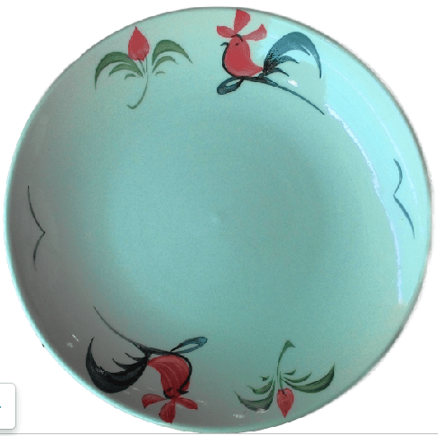 - จานเซรามิคเคลือบใสสีครีมวาดลายไก่